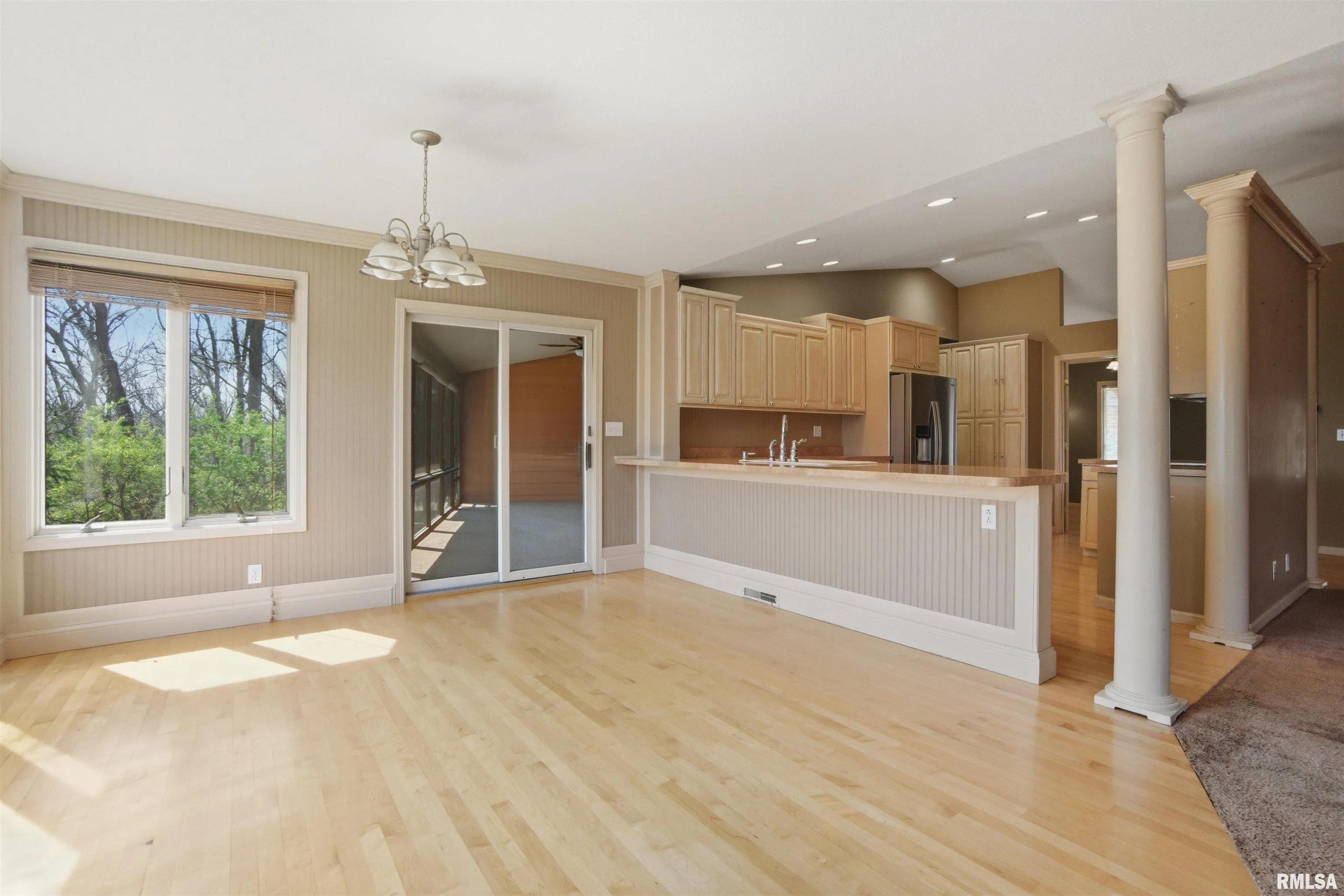 +"PublicRemarks ": "A Ranch That Refuses to Be Ordinary** Nestled on a sprawling 1.6 acre wooded lot at the end of a peaceful cul-de-sac, this unique 3-4BR, 3.5BA ranch delivers the kind of living space most homes only dream about. Step inside and the fireplaced great room immediately commands attention with its soaring cathedral ceiling, setting the tone for a home that values both grandeur & comfort. The spacious primary bedroom suite is a true retreat, complete with a cathedral ceiling, large walk-in closet, private bathroom & access to a covered deck perfect for morning coffee. The main floor den offers flexible living, easily serving as a 4th bedroom for guests or growing families. Convenient main floor laundry room. Downstairs, the finished walkout lower level features a 2nd en suite bedroom with its own walk-in closet, private bathroom and an attached craft or hobby room - perfect for the creative soul who needs space to spread out. Outdoor living shines here with a screened-in porch, a four seasons sunroom and a fenced yard surrounded by mature trees. A 3 stall attached garage (with workshop & large storage closet) plus additional gravel parking means there is always room for everyone. Quality Andersen windows throughout ensure energy efficiency and lasting beauty, while the award-winning school district makes this location as smart as it is stunning.This is the kind of property that checks every box and then invents a few new ones. Schedule your private showing soon! "