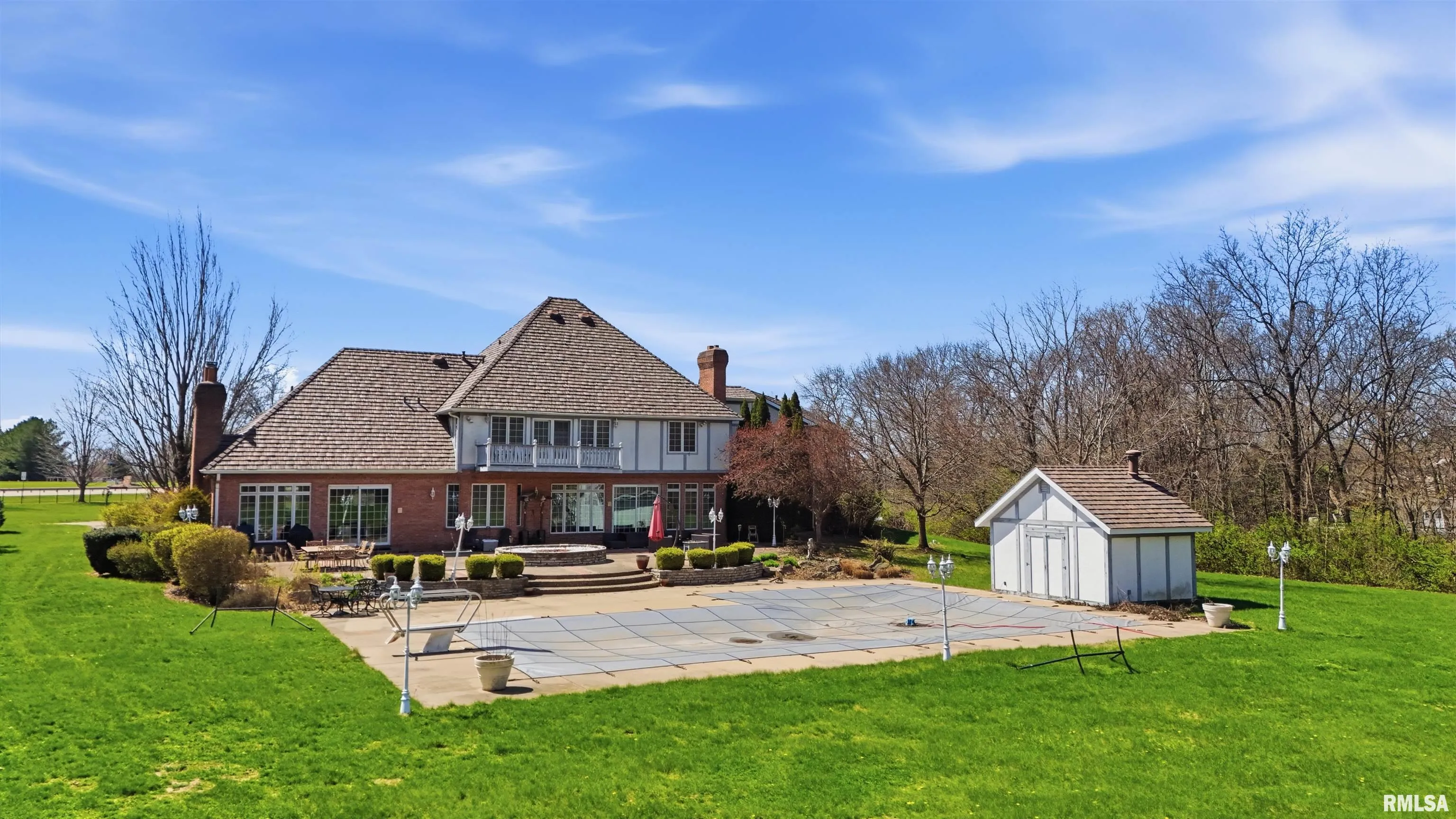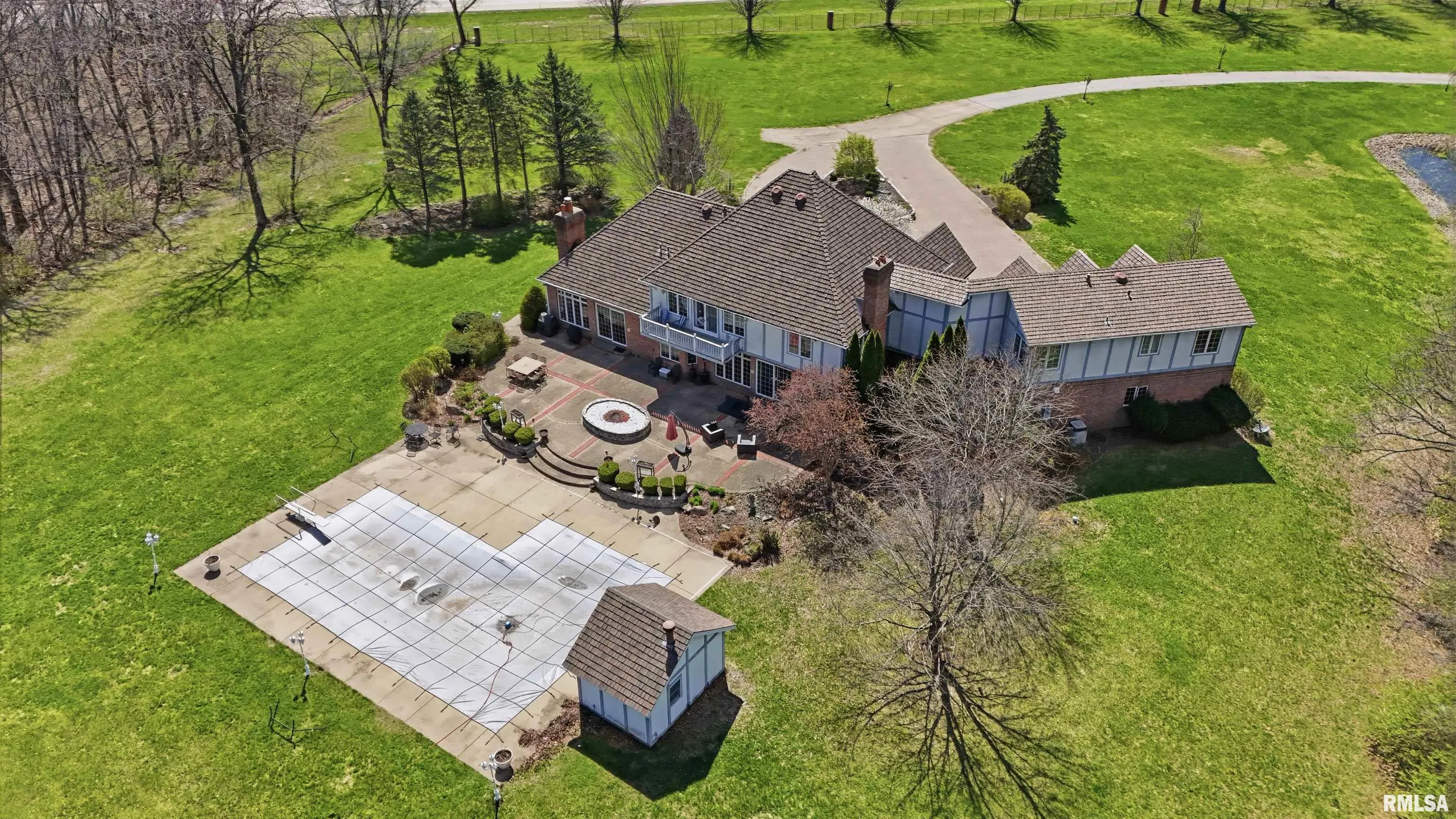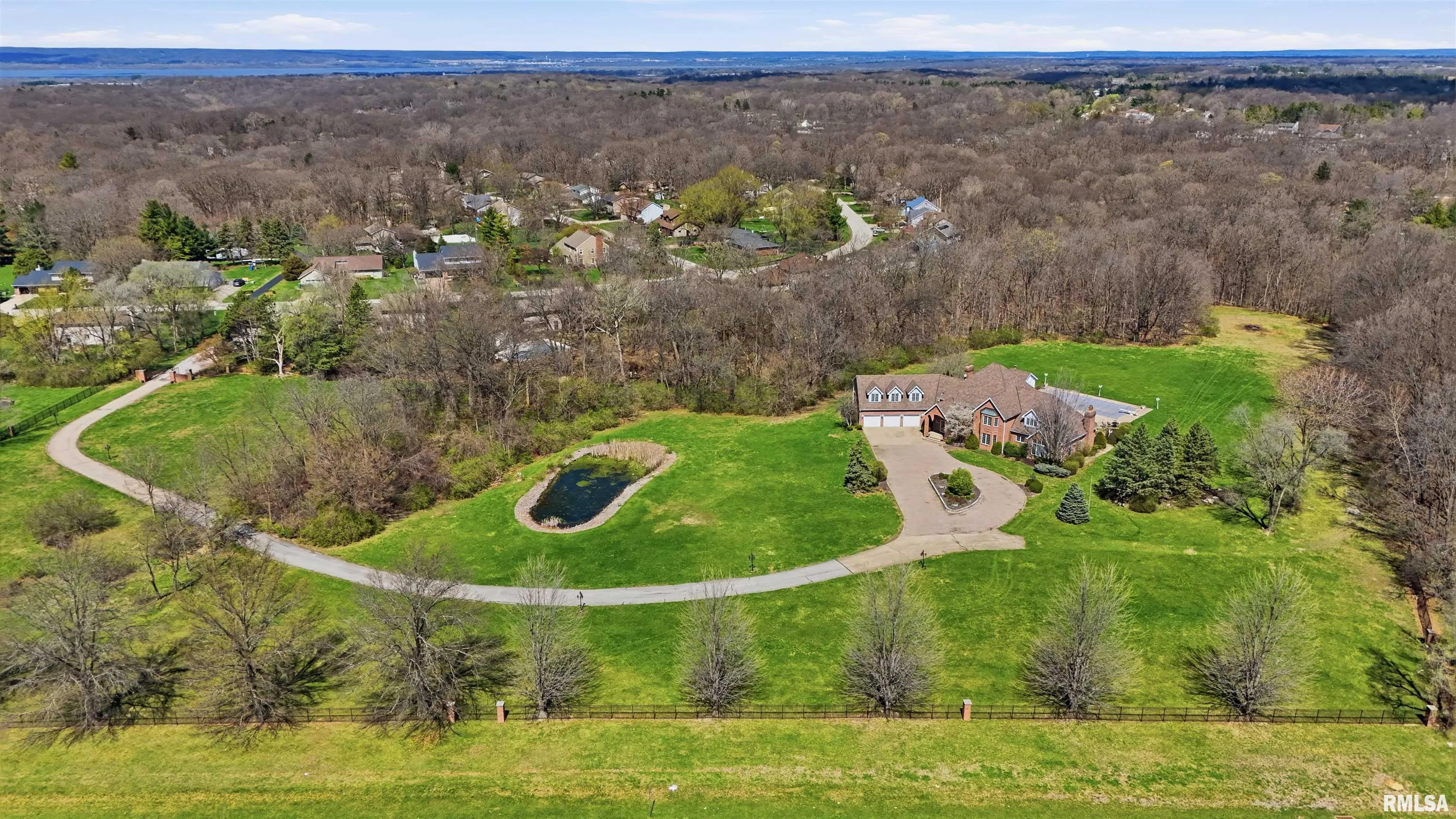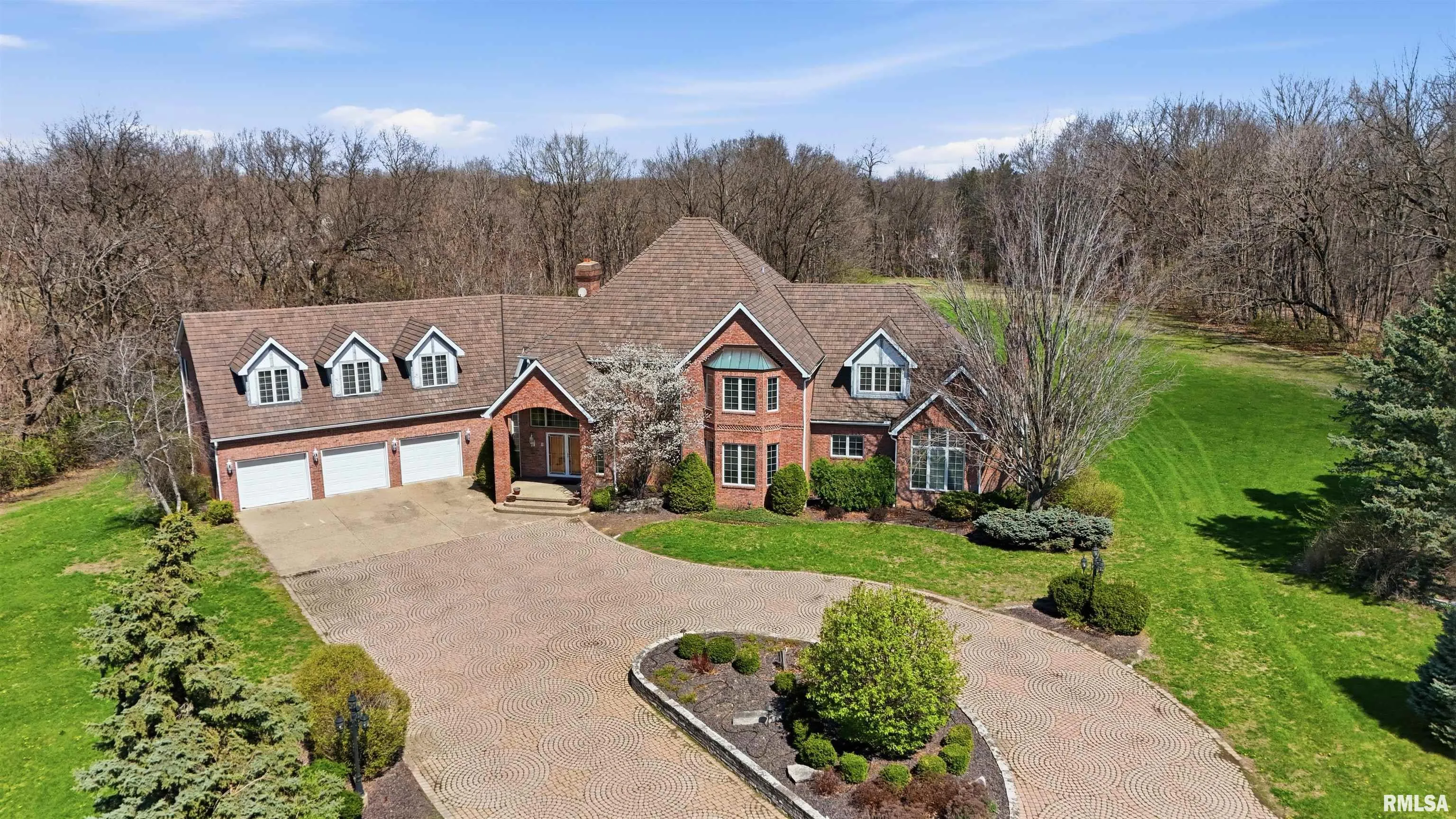 +"PublicRemarks ": "A private drive winds back to nearly 10 pristine wooded acres, revealing an extraordinary custom-built brick estate where masterful craftsmanship & breathtaking outdoor living converge in spectacular fashion. Nestled within the coveted Germantown Hills school district, this residence embodies a level of architectural distinction that would be virtually impossible to replicate in today's market. Beyond the grand entry foyer, a sweeping curved staircase sets an unmistakable tone of elegance. The main level unfolds with deliberate sophistication - a coffered ceiling office, a sunken family room warmed by a gas log fireplace & complemented by a wet bar plus a formal dining room crowned with a tray ceiling. The gourmet kitchen commands attention with its SubZero refrigerator, double ovens & expansive island, while the generous living room offers another fireplace & seamless patio access. Upstairs, 4 bedrooms showcase newer hardwood floors anchored by an incredible primary suite featuring a balcony with French doors, a WIC & a luxurious spa bathroom with whirlpool tub, tiled shower & dual vanities. A dedicated 4th bedroom suite includes its own living room, full bathroom & private laundry. The partially finished lower level delivers a theater area with a 3rd fireplace & a fully equipped entertaining kitchen. Make a splash this summer with your own inground pool with expansive patio! This estate promises enduring quality just 15 minutes from downtown Peoria. "